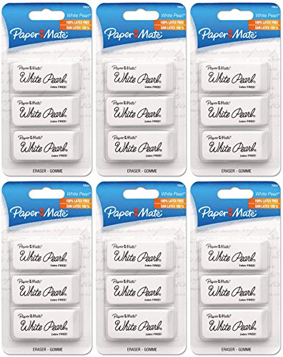 Paper Mate White Pearl Erasers, 3 Count (Pack of 6) Total 18 Erasers